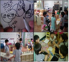 유아1: 촛불집회 봤어? 사람들 엄청 많던데. 유아2: 모두 어두워서 촛불들고 있더라. 유아3: 어두워서 들고 있는게 아니고, 미친 소고기 때문에 촛불집회 하는거야. 유아1: 한국 사람은 미국 고기 먹으면 딱 맛이 없어. 유아4: 사람들 엄청 화났던데. 경찰은 물대포 쏘고. 유아5: 다른반 친구들도 봤을까? 물어보러가자.다른반 친구들에게 물어보고 다함께 이야기방으로 모입니다. 왜 촛불집회를 하는지, 사람들은 어땠는지, 경찰은 어땠는지, 대통령에게 왜 화가났는지 등에대해 이야기를 나눕니다. 유아6: 재협상! 재협상! 이렇게 외쳐. 유아7: 그건 화가난 시민들이 공격하라는 거 아닐까? 유아8: 근데 왜 경찰은 착한 시민들한테 물대포 쏘고, 방패 갖고 오고 그러는거지? 유아9: 경찰은 사람들 보호해야 하는데!유아2: 대통령은 싸우면 말려야하는데 집회에 대통령이 없었어. 유아4: 대통령은 이명박 밖에 없어? 유아5: 엄청 많지. 아마... 50명은 될껄! 유아10: 10명 아니야?