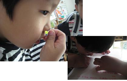 - 주변에 있던 유아들이 똥이라는 이야기를 듣고 모여들어 손으로 딱딱해진 애벌레 똥을 만지더니 눈으로 보고 냄새를 맡아 보았다.