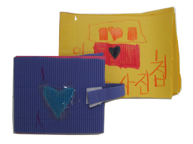 #4. 네꺼는 사진첩을 넣는 것(집)도 있어? 멋지다. 바깥에 것(집)은 잘 만들었어. 근데 안에 종이는 다 달라서 똑같이 하면 더 좋겠어.