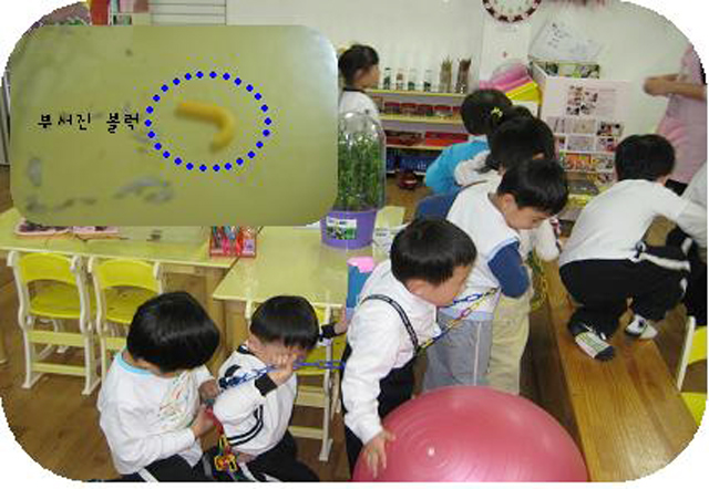 유아4: 애벌레가 움직여요.유아5: 여기 똥도 있이요.
