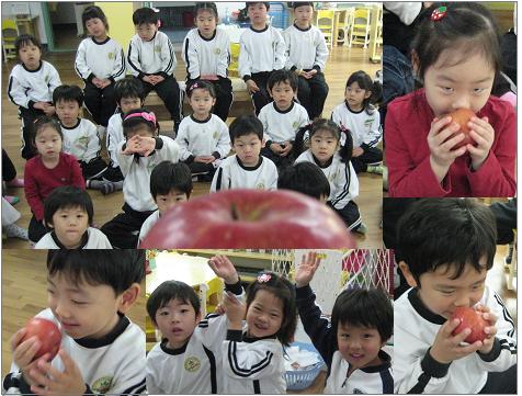 - 그리고 교실의 식물과 비슷한 향기가 난다며 태균이가 가지고 온 사과를 가지고 왔다. 아이들과 냄새를 맡아보고 어떤 냄새가 나는지 알아보았다.
