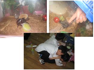 자유시간을 가지며 친구들과 신나게 뛰고 웃으며 햇살반은 또 하나의 추억을 가슴 속에 담았답니다. 정말 신나게 뛰어 노는 아이들의 모습을 보며 미안한 마음도 들었답니다. 아이들에게는 마음껏 뛰어 놀 수 있는 공간이 제일 필요하구나 하구요.<장수풍뎅이 커플 탄생!>