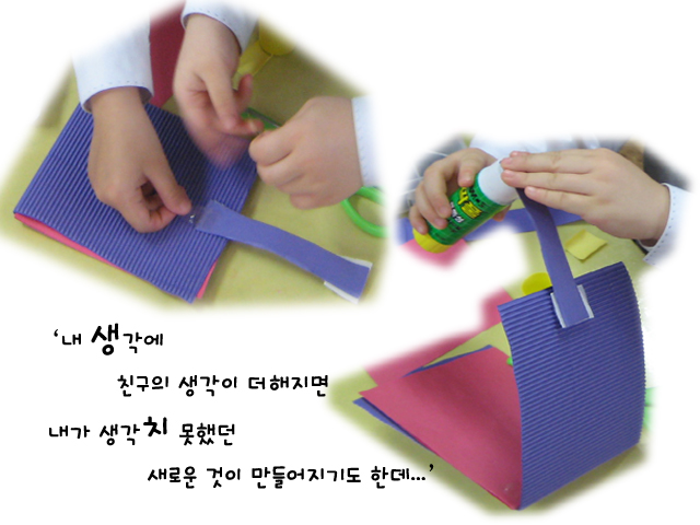각자가 생각했던 자신들만의 다양한 방법에 친구의 생각이 덧붙여져 새로운 것을 만나게 되는 일도 무척 흥미롭고 의미 있는 일이여서 사진첩 만들기는 더욱 많은 아이들을 하나, 둘 끌어들여 함께할 수 있는 활