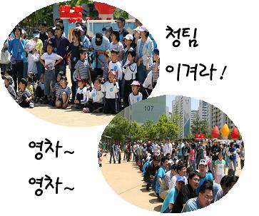 게임이 끝나면 모두 엄마 아빠에게로 달려가 함께 응원도 하지요.
