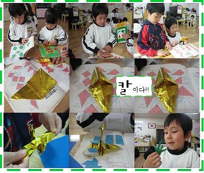 유아들: 선생님 학접기 할래요!! 접는 순서를 보며 접기를 시작하는데.. 유아1: 아..3번부터 조금 어렵다. 선생님이 도와주세요! 책을 보며 접기에 도전한 아이들.. 그리고 조금 어려워 하는 것에 대해 지원을 해주었다. 유아4: 12번은 내가 접을 수 있어요! 그리고 완성된 학!! 접은 학을 보며 접기경험에 대한 기쁨과 소중함을 함께 나눈다.