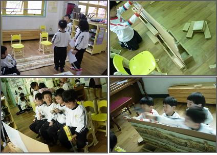 C1: 으~ 너덜너덜해 졌다. 선생님 이거 단단히 붙여주세요. 글루건으로 단단히 고정시키던 중~~자료실을 들어가 다양한 재료들을 살펴더니 철사 뭉치를 들고 나왔다. C1: 감옥 만들자. 공주가 갇혀있는 감옥! C2: 녹음은 언제하지?