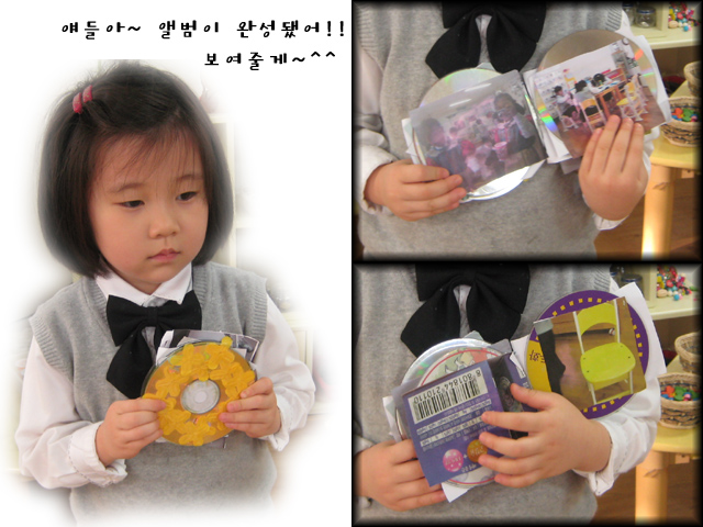 아이들이 사진을 찍고 프린트한 사진을 이용해서 완성된 앨범을 친구들에게 소개하였다.