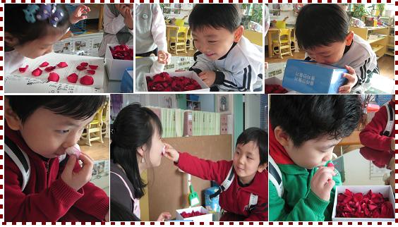 - 아이들과 함께 따 놓은 장미꽃잎들 냄새를 맡으니 토마토냄새라는 표현이 너무나 잘 어울린다는 생각이 들었다. 향기에 관심을 보이던 유아들에게 교실에
