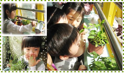 교사:(창가에 있는 허브에 물을 주고 있는 유아에게) 여기서 무슨 냄새가 나는 것 같은데!!