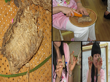 유아들: 꿀벌집 같아요. 빵 같아요. 나무냄새 같아요. 아휴~ 똥냄새 하하하..