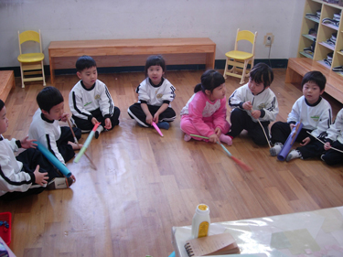 -유아들은 단지 내가 쳐서 종이공이 날아가는 것을 보며 너무나 즐거워하고 함께 합니다.