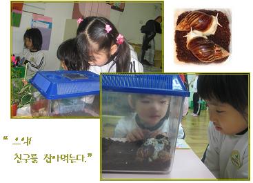 햇살반 교실에 달팽이 친구가 이사를 왔어요.