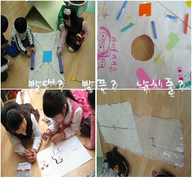 -공유시간 이후 하늘반 유아들의 연에 대한 관심은 확대됩니다. 관심있는 유아들이 모여 날 수 있는 연을 만들 것을 계획한 후 재료를 선택하는데 있어서 여러 의견들이 대립됩니다. 그래서 같은 생각을 가진 친구들끼리 모여서 하면 좋겠다는 생각을 하게 됩니다.