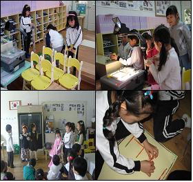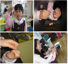 교사: 매듭짓는 것을 성공했네? 하늘반 친구들에게 묶는 방법을 가르쳐 줄 수 있겠니?