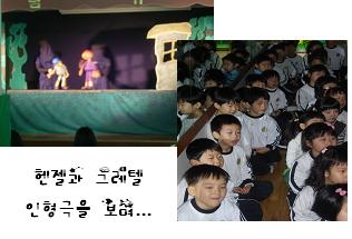 형님반 동생반이 모여 입학식 축하공연 "헨젤과 그레텔" 인형극을 즐겁게 보고 원장님의 말씀도 듣고 선생님들과 인사도 나눴다.