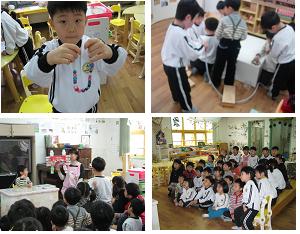 계획지에 선택 영역, 제목, 설계도를 그리고 활동을 시작한다. 쌓기영역, 구슬꿰기, 편지쓰기, 조형영역, 도예영역, 서예영역 등 자신이 선택한 영역에서 생각 주머니를 펼쳐나가는 아이들...