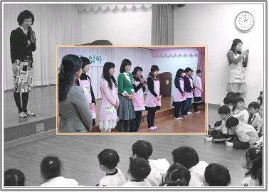 - 잎새반 친구들이 새로운 친구들과 선생님을 만나 입학식을 하였습니다. 형님반과 다른반 친구들과 함께 강당에 모여 원장님의 축하이야기도 듣고 새로운 시작을 멋지게 다짐하였답니다. 그리고 한림유치원 선생님들 소개를 듣고 복도나 다른 곳에서 만나면 바르게 인사하도록 꼭! 꼭! 약속 하였답니다.