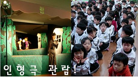- 잎새반 유아들은 인형극을 볼 때 지켜야할 규칙을 이야기 나누고 기다린 인형극을 보러 강당으로 내려갔답니다. 모두들 진지하고도 너무나 신나게 인형극을 보고 교실로 돌아왔습니다.