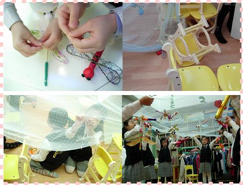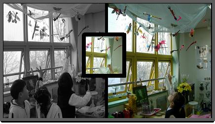 - 아이들이 천에 매단 잠자리를 교실의 천장의 한 부분에 달자 아이들은 자기가 만든 잠자리를 찾으며 즐거워 하였다.