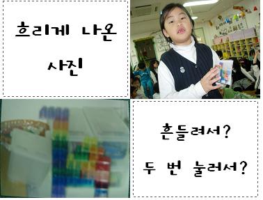 - 한 장의 사진에서 흐린 부분과 선명하게 나온 부분이 동시에 나타난 것을 발견한 아이들은 계속해서 이야기를 나누었다.