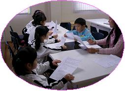 자신의 역할에 어울리는 목소리를 내기 위해 준비하는 아이들~ 다함께 모여 진지하게 녹음을 하였다. 녹음 후 진지하게 재검토를 하는데~