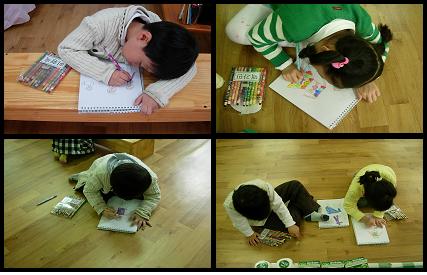 종이 인형놀이에 관심을 가지고 디자인하던 유아들은 이제 디자인 마무리 단계에 들어갔답니다.