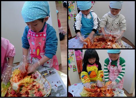 하얀 배추를 김치소로 빨갛게 만들어 주는 김장 담그기는 너무나 재밌었어요.우리는 우리가 직접 담근 김치를 맛보았어요.