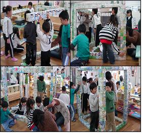처음에는 3-4명으로 시작했는데, 곁에서 지켜보던 친구들과 선생님도 함께 틀 만들기에 협력합니다.