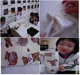 유아3: 나는 바느질 하는거 조금 무서운데.. 바늘에 찔릴까봐 겁나거든...