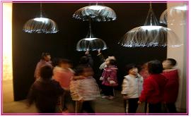 아이들이 신기해하며 관심을 보인 작품은 어두움 속에서 반짝거리고 해파리 모양으로 달려있는 조형물!