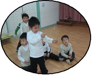큰 과녁을 향해 유아들이 활을 쏘았다.