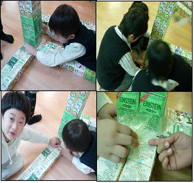 맞아요~ 우유팩 벽돌을 열심히 만들고 있답니다<의상팀>