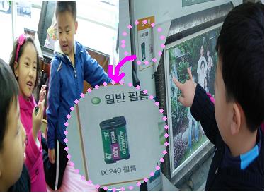 - 대부분 아이들이 필름이라고 생각을 했고 한 유아는 끝까지 건전지라고 생각 하였다. 그리고 그 아이들과 함께 사진관에 필름을 맡기러 갔다. 그리고 사진관 입구에서 필름이라고 적힌 사진을 보았으며 사진관 아저씨에게 필름이라는 대답을 듣게 되었다.