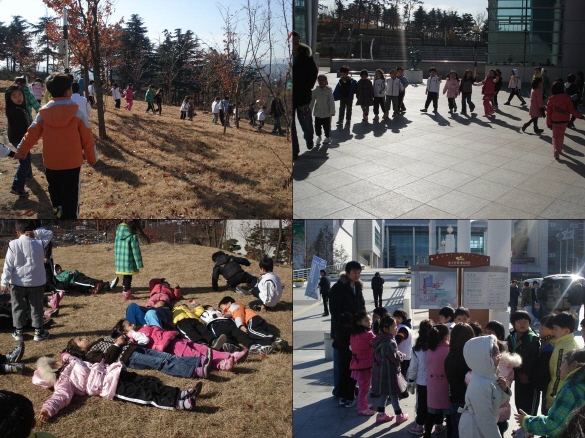 뒷쪽에 있는 야외정원에 가서 가슴이 펑~ 뚫릴 만큼 큰 소리도 지르고 펼쳐진 잔디 밭에서 위에 누워서 하늘도 보고 잔듸 썰매도 타고 잡기놀이하며 신나는 시간을 보냈습니다.