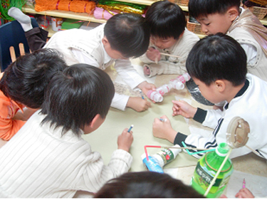 -유아들의 생각이 많아서 괴물의 모습을 그림으로 그려 보았습니다. 다 같이 힘을 합해서 하면 좋을 것 같다고 이야기를 하지만 그림을 그릴 때는 자신이 생각하는 괴물, 도깨비를 그립니다. 그리고 무서운 표정흉내도 냅니다. 유아들은 괴물의 모습을 그리면서 마치 유치원에 진짜 괴물이 온 것처럼 긴장된 모습입니다. 유아들은 어떤 모습의 괴물을 만들게 될까요?