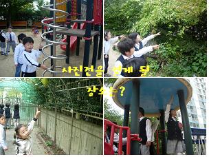 - 여러 장소를 물색하던 아이들은 우리가 사진을 전시했을 때 사람들이 일부러 찾지 않아도 쉽게 볼 수 있고 입구와 가까운 곳으로 하기로 했다. 그래서 유치원 입구의 나무에 사진들을 전시하기로 결정하였다.