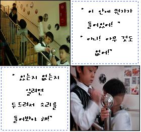 친구의 말에 다시 두드리며 소리를 들어봅니다. 우리는 어떤 재료를 준비해야 할까요?