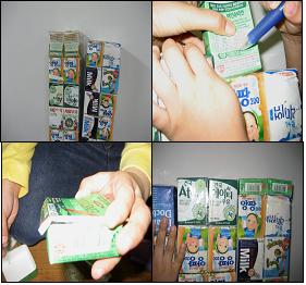 우유팩에 알맞은 길이를 표시하고, 자르고, 종이를 넣고 테이프로 붙이고!