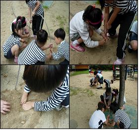 유아6: 땅이 철사를 꽉 잡고 있으니까 그렇죠. 우리도 해 봐요.
