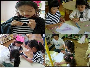 유아1: 선생님 우리 아빠옷도 만들고 꾸며요.