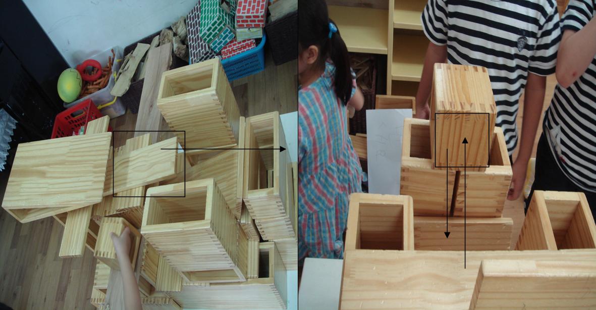 유아: 나무블럭만 사용하니까 키가 모자라요.