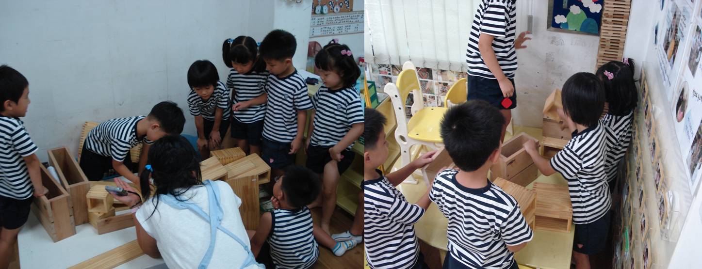 유아들은 슈퍼 바이킹팀에게 나무블럭을 빌리고 블럭과 의자을 이용해 손 끝이 탑 맨 위쪽에 닿음을 확인하고, 두 번째 문제에 대해 해결하기위해 다시 모였습니다.