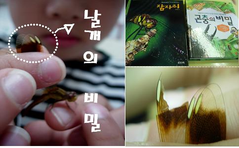 유아: 오 비밀을 밝혔어! 이 노란색 점은 잠자리가 더 잘 날기 위해서 있는 거래. 여기 봐! 이 점이 저항을 줄여서 더 잘 난다고 그래.