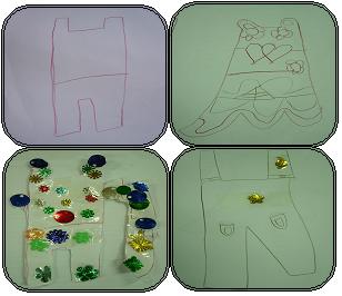 유아들은 친구들이 말한것 처럼 자른 디자인 위에다 자신이 만들고 싶은 천도 붙여 보기로 했답니다.유아들이 디자인 한 옷에는 또 어떤 변화가 있을지 기대해봅니다.