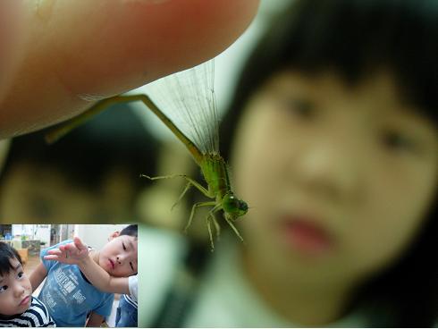 - 잠자리에 관한 호기심으로 가득한 아이들에게 잠자리가 찾아왔다.