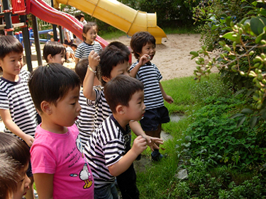 방학이 지나고 가을이 다가오면서 한림유치원 앞마당은 조금씩 변하고 새로운 친구들도 많이 생겼습니다. 유아: 나비가 잡혔다. 반으로 접어서 먹으려 해요