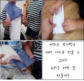유아2: 커텐 무대막이 좋겠어요. 유아3: 그건 너무 쉽게 만들겠어.