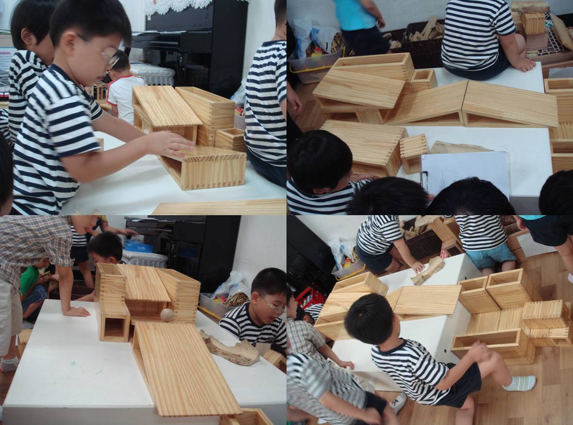 유아들은 블럭을 하나씩 옮기며 길을 만들기 시작했습니다. 금방이라도 완성될 듯 길의 모양이 나타나기 시작했습니다. 계획과는 조금 다른 길이였지만 조금 더 지켜보기로 했습니다.