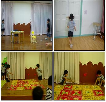 유아5: 아니! 그건 무대막에서 연극하는데! 유아3: 에이~그러면 이거 다 필요없잖아. 배우팀 괜히 왔네. 다시 교실로 가 줄래?