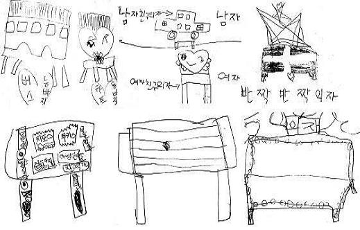 - 나뭇가지를 붙여 놓은 의자다리를 보고 한 유아가 빈 곳이 너무 많아 우유통이 보이는 것을 지적하였다.